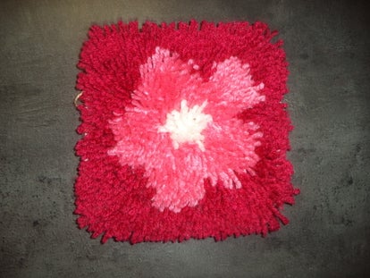 Smyrna onderlegger Blauwe bloem. Kan ook gebruikt worden als kadertje aan de muur.
